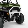 Heavy-duty 1.5” (3.8 cm) diameter steel-tube construction. Inside and outside anti-corrosion coating with durable finish. Provides additional front body protection. Integrated winch support plate for winch relocation at a higher position for easier access in muddy conditions or for auxiliary lights. Includes a front tow hook. Winch not included.